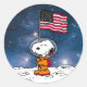 Sticker Rond ESPACE | Snoopy avec astronaute du drapeau