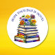 Je souhaite à quelqu'un une bonne journée avec ces autocollants de scellés d'enveloppe qui souhaitent à quelqu'un un un jour nouveau. Graphiques d'aquarelle illustrant une pile de livres vintages recouverts de fleurs bleues et jaunes, réalisés dans un style aquarelle ai.