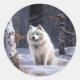 Sticker Rond Esquimau Américain Laisser Neige Noël