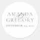 Ce stickers de faveur chic et élégant dispose d'un design sophistiqué avec les noms des couples dans une police serif classique et une belle police de script lisant "Et" connectant leurs noms. La palette de couleurs bleues peut être customisée à vos couleurs de mariage ou d'événement. Ces autocollants de faveur sont parfaits pour accuser une enveloppe ou un sac de faveur pour un mariage élégant ou une célébration d'anniversaire.