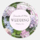 Un amas de fleurs d'été d'Hydrangea définit l'arrière - plan pour ce Sticker Mariage rond classique. Décorées dans des tons pastel doux rose, vert et lilas, avec une bordure vert pastel. Le texte avant comprend : Les prénoms de la mariée et de la mariée, la date du Mariage et le mot : MARIAGE au centre. Pour personnaliser, il vous suffit de remplacer l'exemple de texte en utilisant notre modèle facile. N'oubliez pas de consulter la collection de Mariages de couleur rose et verte pour les cartes et accessoires assortis.