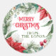 Sticker rond Étiquette Joyeux Noël Poinsettia
