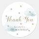 Cet autocollant de remerciement d'anniversaire mignon présente des étoiles de parties scintillant en or faux et des nuages bleus moelleux sur un arrière - plan blanc. Personnalisez-le selon vos besoins.