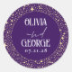 Autocollants de mariage violet et or avec ciel étoilé et noms de couple