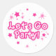 Sticker Rond Étoiles scintillantes rose et blanc Allons-y Fête