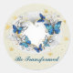 Sticker Rond Être transformé Cité Coeur et Papillons Bleus