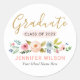 Sticker Rond Étudiant Or Script Aquarelle Florale Graduation