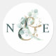Personnalisez cet autocollant mariage élégant et moderne avec vos monogrammes joints par une aquarelle dorée et verte d'eucalyptus ampersand. Des articles correspondants sont également disponibles.