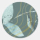 Ajoutez une touche d'élégance à votre papeterie mariage avec cet autocollant rond avec un design d'eucalyptus aquarelle dans des tons doux vert-bleu avec des accents d'onde or artistique. Parfait pour sceller les enveloppes, favoriser l'emballage ou ajouter un détail chic à votre suite mariage moderne.