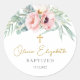 Baptême bébé autocollant. Ce dessin présente une illustration de fleurs d'eucalyptus, de pivoines et d'anémones en aquarelle. En haut il y a une image de croix.. À l'envers - vous pouvez placer votre photo