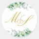 Sticker Eucalyptus Gold Monogram Mariage Classic Round