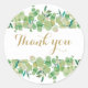 Doté de délicats feuilles d'eucalyptus à l'aquarelle, cet autocollant de remerciement botanique chic peut être personnalisé avec votre message de remerciement dans la typographie dorée chic. Conçu par Thisisnotme©