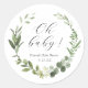 Scellez vos enveloppes d'invitation ou vos faveurs avec ces autocollants botaniques "oh bébé !" classiques. Avec "oh bébé!" et nom de l'événement et date encadrée par une couronne d'aquarelle de feuillage vert eucalyptus. Coordonner avec la collection Eucalyptus trouvée dans la boutique Adore Paper Co. Zazzle.