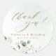 Aquarelle moderne chic Eucalyptus Verdure et blanc floral sur arrière - plan vert poussiéreux, couleur or tendance Merci script avec les noms de couple et date mariage, élégant et élégant, grand merci pour les autocollants pour mariage rustique, mariage botanique et mariage de plage au printemps et en été. Voir toutes les pièces correspondantes de la collection