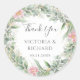 Beaux autocollants de Merci mariage avec des eucalyptus couleur rose vif et des feuilles d'or.