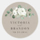 Sticker Rond Eucalyptus Vert blanc floral rustique monogramme