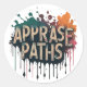 Le "Appraise Paths" présente une silhouette d'un randonneur qui se promène sur un sentier de montagne. Le texte "Appraise Paths" est écrit en gras, en lettres blanches sur le devant. Le design se décline en bleu et vert.