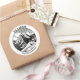 Un Ex libris Étiquette avec un dessin de style boisé d'un paysage alpin avec montagnes, arbres et neige. Modifiez le nom pour personnaliser.