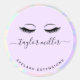 Superbe extension de cils design autocollant avec la texture colorée faux holographique, cercle violet et élégante police calligraphie.