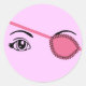 Ces t-shirts et autres objets sont imprimés avec un graphisme stylisé d'un visage portant un eyepatch rose dentelle.