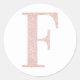 Sticker Rond F girly pailleté or rose pâle monogrammé