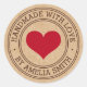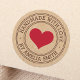 Autocollants avec un cœur rouge et texte "Fabriqué à la main avec amour" et nom personnalisé sur un fond aspect papier kraft imprimé. Utiliser comme sceaux d'enveloppe, autocollants pour cadeaux et faveurs, emballage de produits, etc