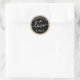 Autocollant rond avec le texte "fait à la main avec amour" et votre nom personnalisé en blanc sur un cercle noir avec une imprimé papier Kraft look bordure et papier Kraft look coeurs. Le mot "amour" est écrit dans une police élégante de script de calligraphie. Les polices et les couleurs solides sont personnalisables. Utiliser comme scellés d'enveloppe, autocollants pour les cadeaux et les faveurs, emballage de produits, etc. Suivez-nous sur Facebook : @businessstationery pour plus de produits, nouvelles, ventes et plus encore.