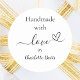 Un arrière - plan blanc élégant, du texte noir. Personnalisez et ajoutez votre nom. Avec le texte : Fait à la main avec amour, par + un petit coeur.