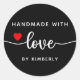 Sticker Rond Fabriqué à la main avec l'amour Noir simple