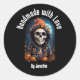 Sticker Rond Fabriqué à la main avec l'amour Squelette Éffrayan