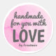 Design d'autocollant couleur rose blanc avec texte "Fabriqué à la main pour vous avec amour". Customisez cet autocollant en ajoutant votre propre nom.