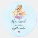 Sticker Rond Fabriqué avec amour Aquarelle mignonne Mère Lion &