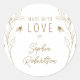 Fabriqué avec amour Ligne personnalisée Art floral Croquis classique Sticker rond Étiquette produit... Un autocollant élégant en or et blanc rond pour vos cadeaux faits à la main, les aliments faits maison ou les produits faits maison à vendre. Des croquis floraux d'art en ligne bordent le texte qui dit "Fabriqué avec amour par" suivi de votre nom dans la typographie de script tendance. Vous pouvez facilement modifier le nom et tout le texte du modèle de personnalisation.