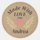 Sticker Rond Fabriqué avec amour Nom personnalisé