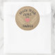 "Personnalisez" cet autocollant rond classique avec "Fabriqué avec amour de..." sur arrière - plan en papier artisanal, avec votre nom, couronne botanique et coeur rose! Vérifiez toutes les options avant de commander.