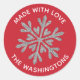 Un autocollant de flocon de parties scintillant en faux rouge et argent avec l'accueil, Fabriqué avec amour. Personnalisez-le avec votre nom de famille. Amusez-vous pour les gâteries et cadeaux de votre voisin de Noël. Conçu pour vous par Blackberry Boulevard.