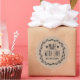Un autocollant personnalisé "fait avec amour" sur un arrière - plan de couleur kraft entouré d'une couronne de laurier et de coeurs. Faites-le le vôtre en ajoutant votre propre nom. Une jolie touche de finition pour tous vos cadeaux faits main. Conçu pour vous par Blackberry Boulevard.