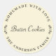 Autocollants/étiquettes de pâtisserie personnalisés avec style classique "Maison avec amour" ou message texte/cadeau personnalisé et nom de famille sur arrière - plans colorés. Ajoute une touche de style aux pâtisseries maison, aux emballages et aux emballages do-it-yourself cadeaux.