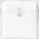 Une jolie image bleu poudreuse avec un petit oiseau dans un chariot de bébé avec sa maman assise sur la poignée tenant une sucette dans la bouche. Un faire-part de naissance sucré / garde saké. Customisez avec vos propres détails.