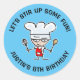 Remuons un joli biscuit pour enfants Anniversaire Classic Round Stickerr avec de mignons dessins animés. Un design amusant pour la fête des enfants près de la cuisine. Ajoutez votre propre texte personnalisé et votre couleur arrière - plan. Cute pâtissier cuisinier dessin animé avec tablier rouge et casquette du cuisinier. Une partie de la collection correspondante avec des invitations et plus. Disponible en petites et grandes tailles. Peut aussi servir de sceaux pour les faveurs et les enveloppes du parti.