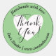 Des autocollants ronds au coeur blanc, le texte "fait à la main avec amour" et votre nom et votre site web ou tout autre texte personnalisé sur un arrière - plan éco-vert. Les mots "Merci !" sont écrits dans un élégant script de calligraphie. Utilisez comme scellés d'enveloppe, autocollants pour les cadeaux et les faveurs, ou tout autre emballage de produit.