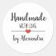 Autocollant moderne "fait main avec amour" avec une police noire sur un arrière - plan en carton agrémenté d'un coeur rouge mignon. Customiser du texte.