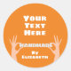 Paire de mains tenant le mot "fait main" avec nom et texte personnalisés. La couleur Arrière - plan peut être modifiée.