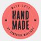 Sticker Rond Fait main avec Amour Artisanal Corail Rose Personn