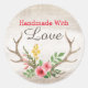 Sticker Rond Fait Main Avec Amour Bois de Cerf Rustique Bohème