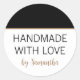 Sticker Rond Fait Main Avec Amour par Nom Or Noir