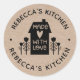 Un autocollant personnalisé de 3 pouces "fait avec amour" avec une jolie petite maison avec un coeur et les mots, fait avec amour sur un arrière - plan de couleur kraft. Personnalisez-le en ajoutant votre propre nom. Une jolie touche finale pour tous vos cadeaux faits maison. Conçu pour vous par Blackberry Boulevard.