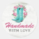 Sticker Rond Faits à la main avec amour Bottes et roses de cowg