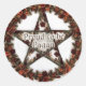 This whimsical sticker features a rustic pentacle wreath adorned with autumnal red flowers frames the phrase "Proud to be Pagan," symbolizing pride in Pagan spirituality and nature worship.