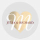 Un design monogramme élégant et romantique avec un coeur jaunâtre sur arrière - plan gris pâle, personnalisé avec votre famille initiale dans un style script, et prénoms... pour vous des invitations de mariage élégantes.